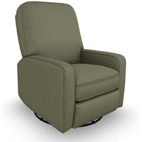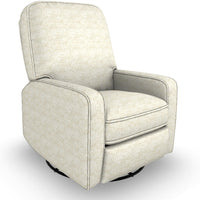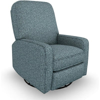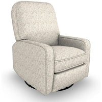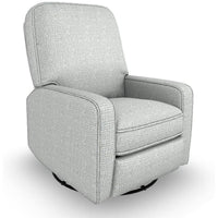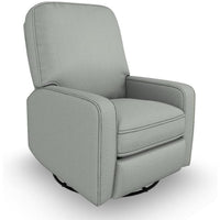 You’ll have a blast picking the fabric that best suits this swivel glider recliner. The squared corners and straight lines lend itself to be either contemporary or transitional and can coexist with any of your furniture.  Comfort is smooth and effortless with the hidden inside reclining handle, or  upgrade to power that features a stylish button on the side that also acts a USB charger. Choose from a wide assortment of fabrics to suit your decor. The Bilana Swivel Glider is a stylish recliner that is ideal for any room of the home, including the nursery.